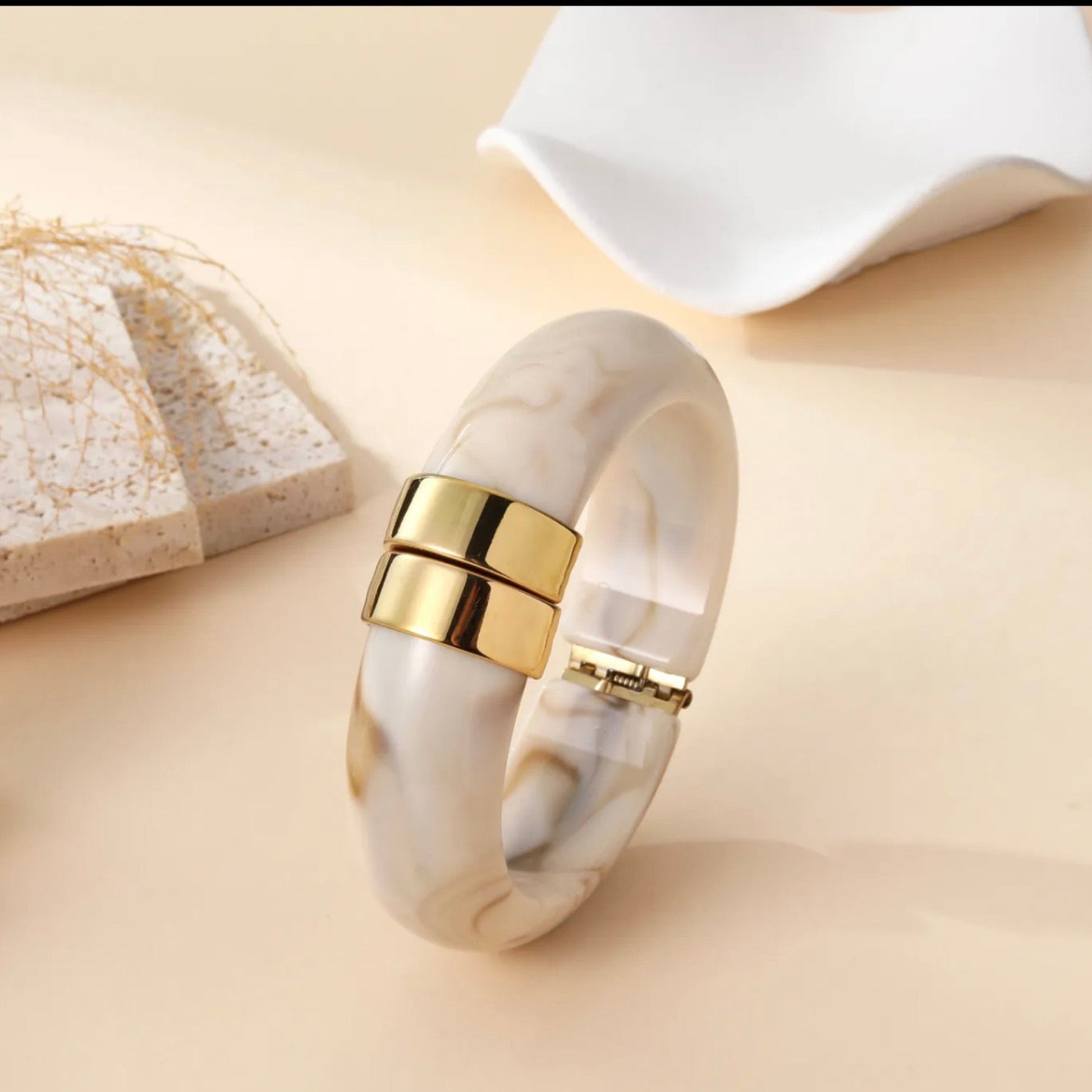 🤍 Bracelet Jonc Beige Élégance – Acier Inoxydable Doré