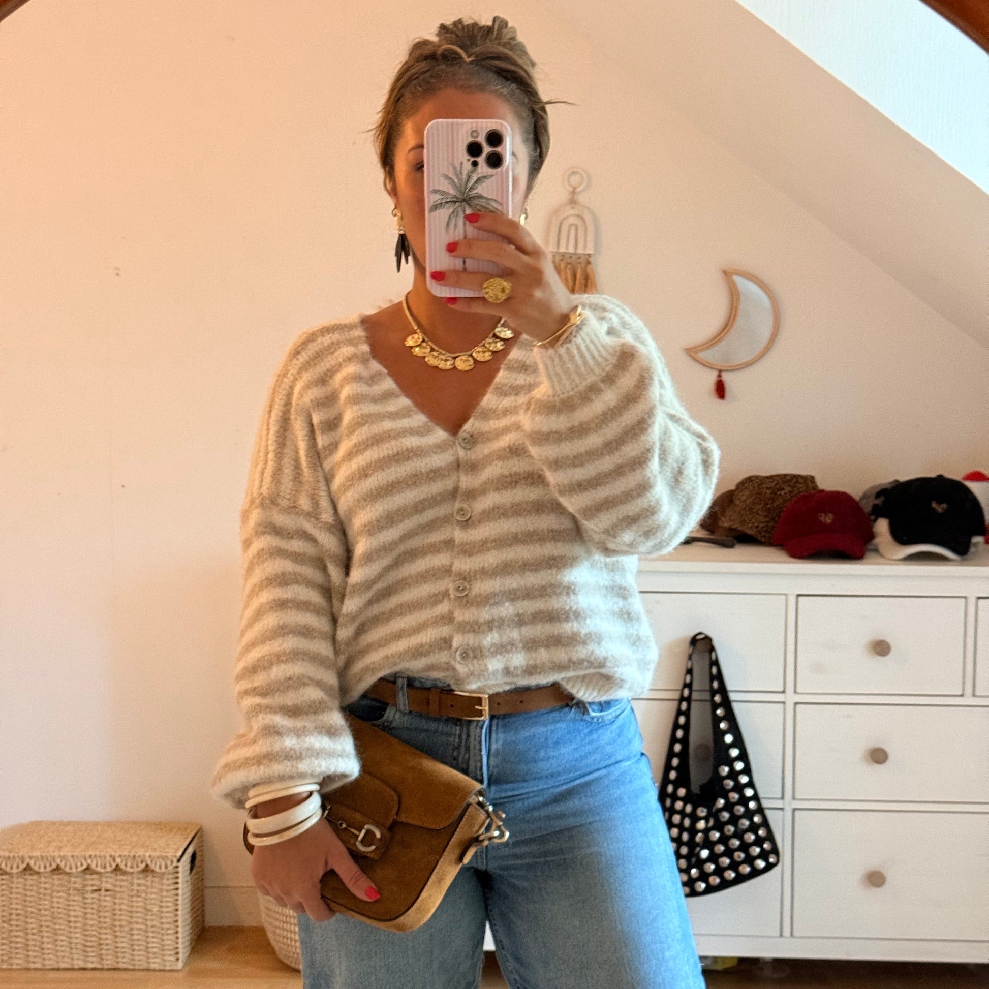 Craquez pour notre gilet femme en maille mélangée, alliant chaleur, douceur et légèreté.